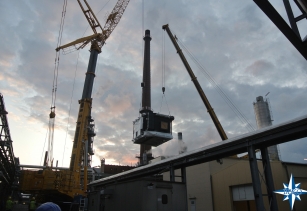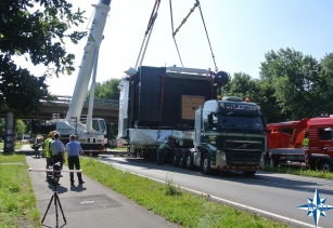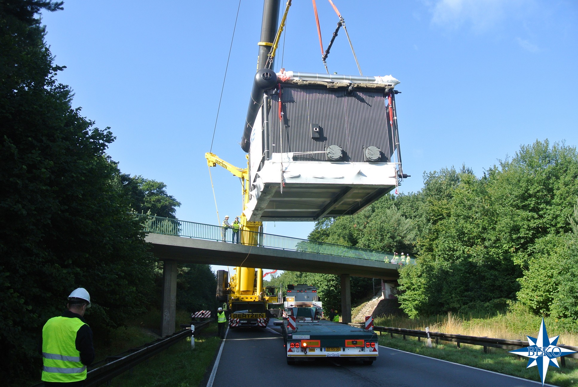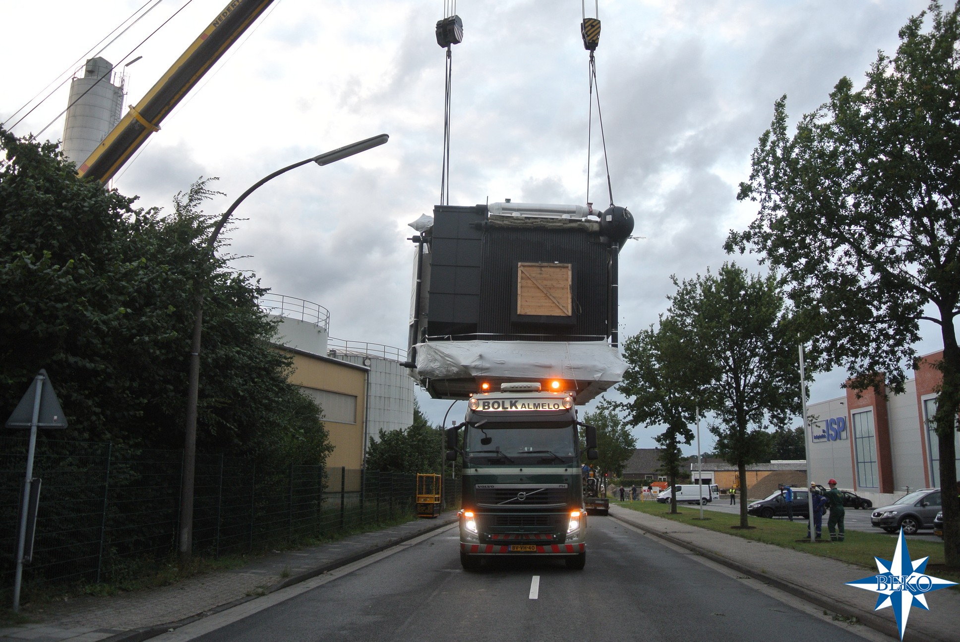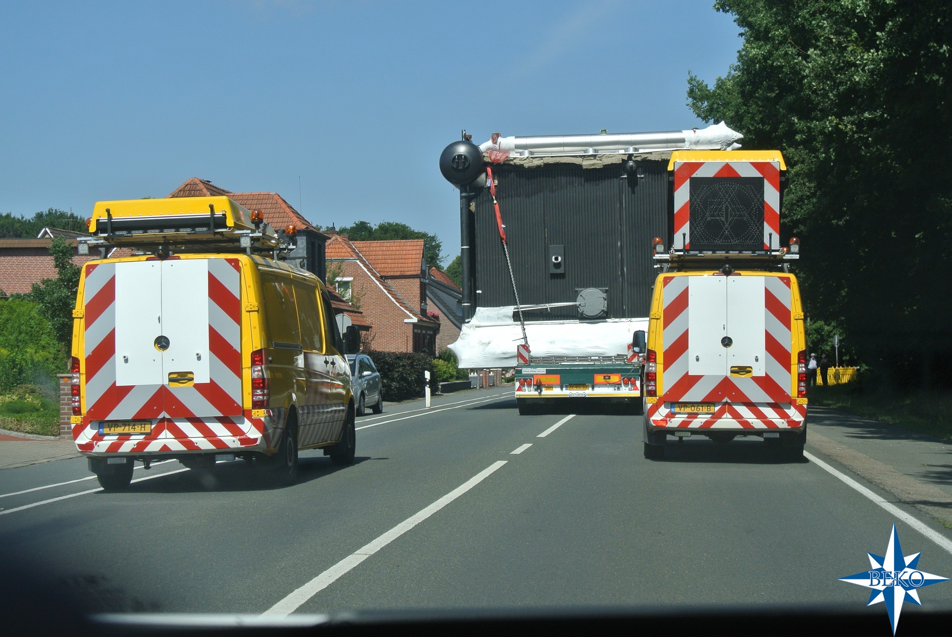 Voor een van onze regelmatige klanten mochten we het transport verzorgen van een ketel met afmetingen L x B x H 10.05 x 7.73 x 6.30 mtr . Het binnenschip moest geballast worden voor vrije doorgang van de kanalen. Na lossen in de haven van Spelle in Duitsland ging het verder per dieplader. Hiervoor moest 2 x een rijksweg worden afgesloten en een viaduct om het transport doorgang te laten vinden