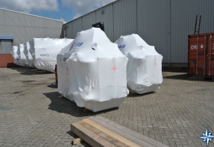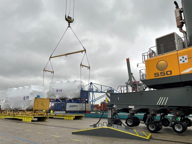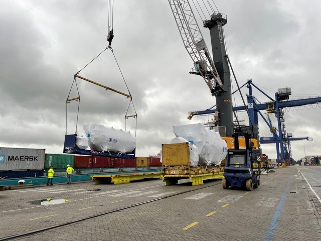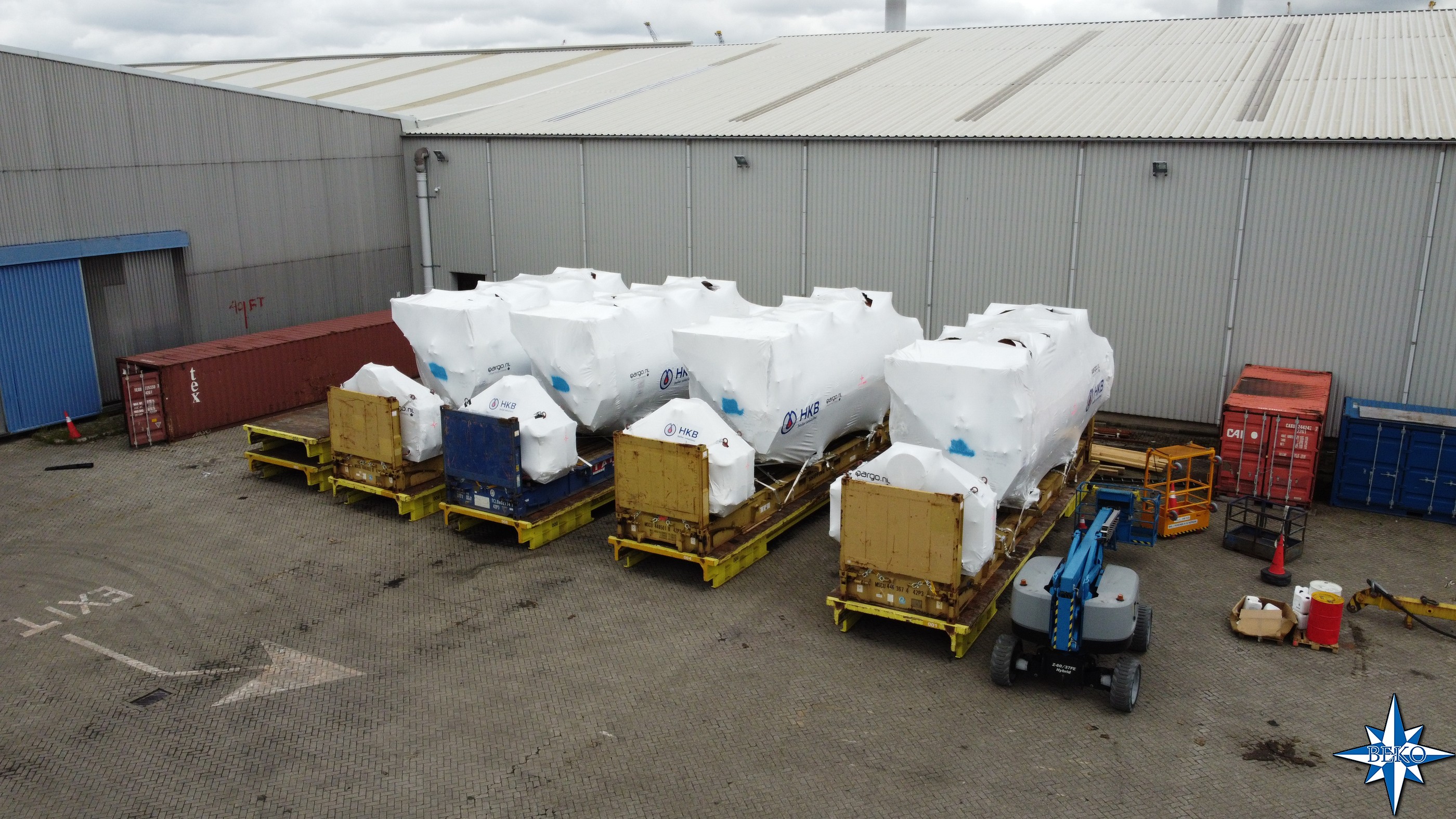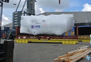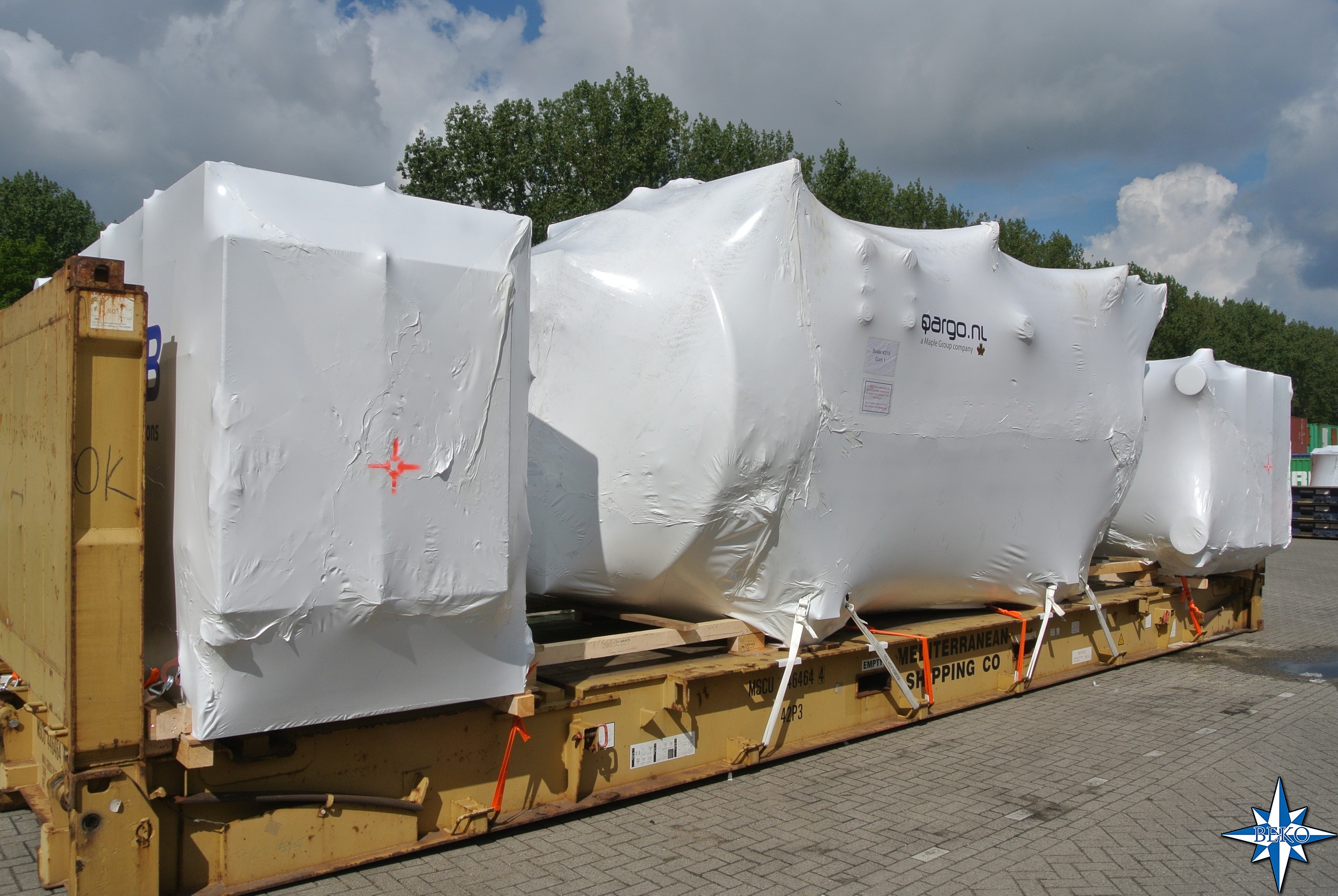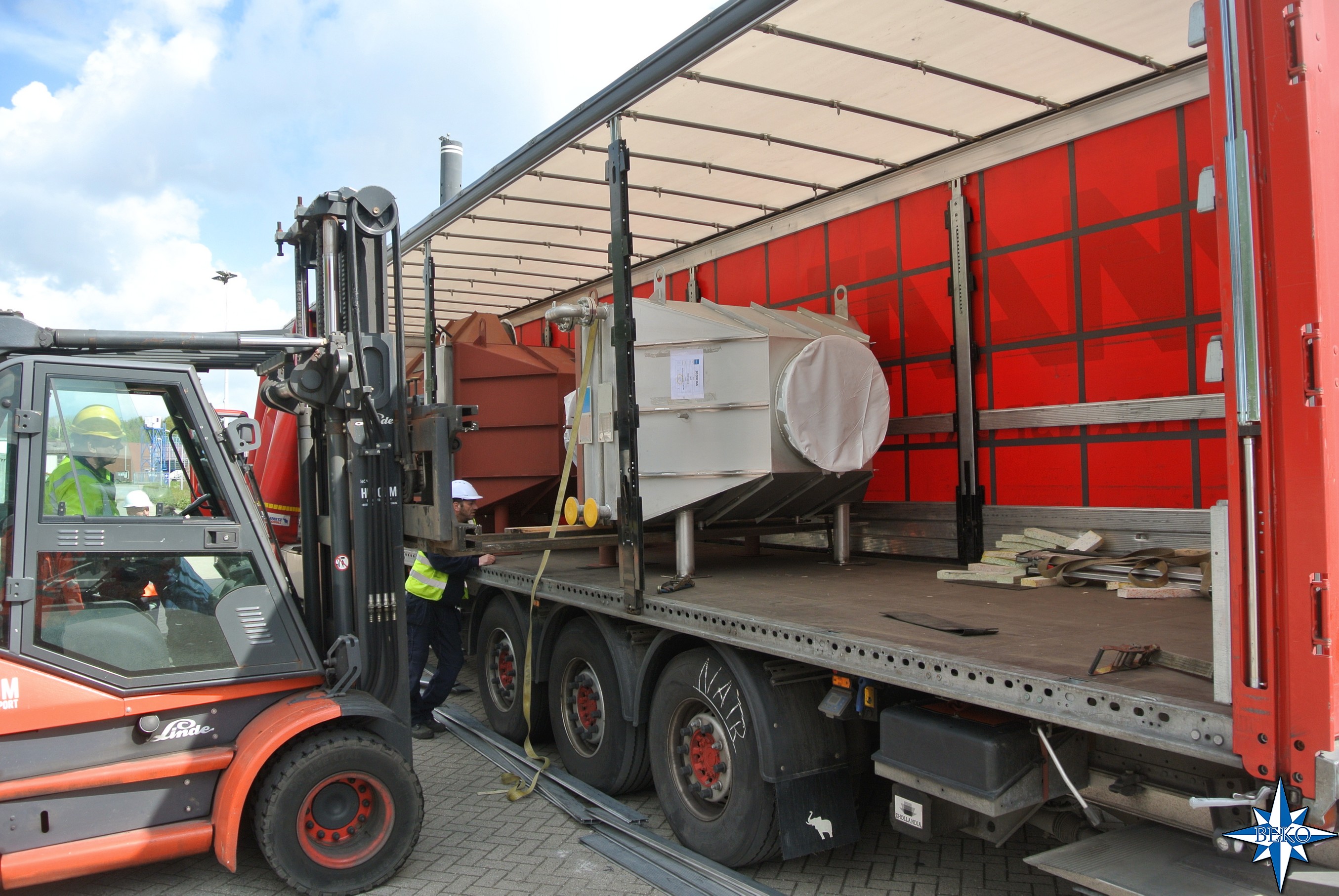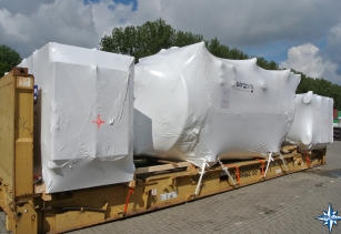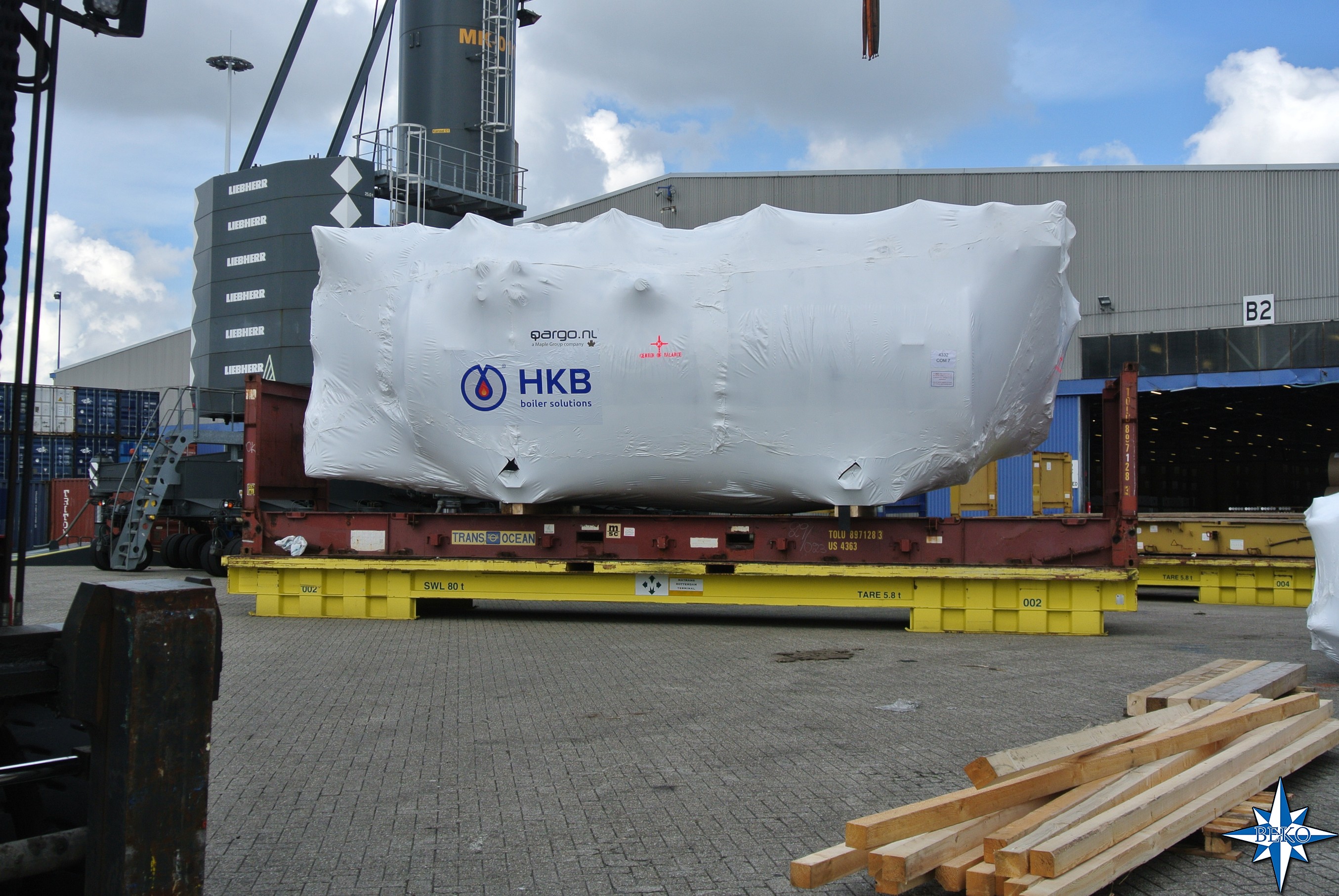 We hebben opdracht gekregen voor het transport van 7 industriële ketels en toebehoren. In totaal geladen op 7 x 40' flat racks allemaal overbreed en overhoog en waarvan de zwaarste ketel 40 ton weegt. We hebben het transport verzorgt van de fabricagehal naar de verpakkers om te krimpen en de goederen te lashen & securen in en op containers. Buiten de 7 x flatracks kwamen er ook nog 3 x 40' OT containers bij. Dit weekend worden ze geladen bij APM II Maasvlakte en dan gaan ze aan boord van de MSC Paloma met bestemming Yantian China