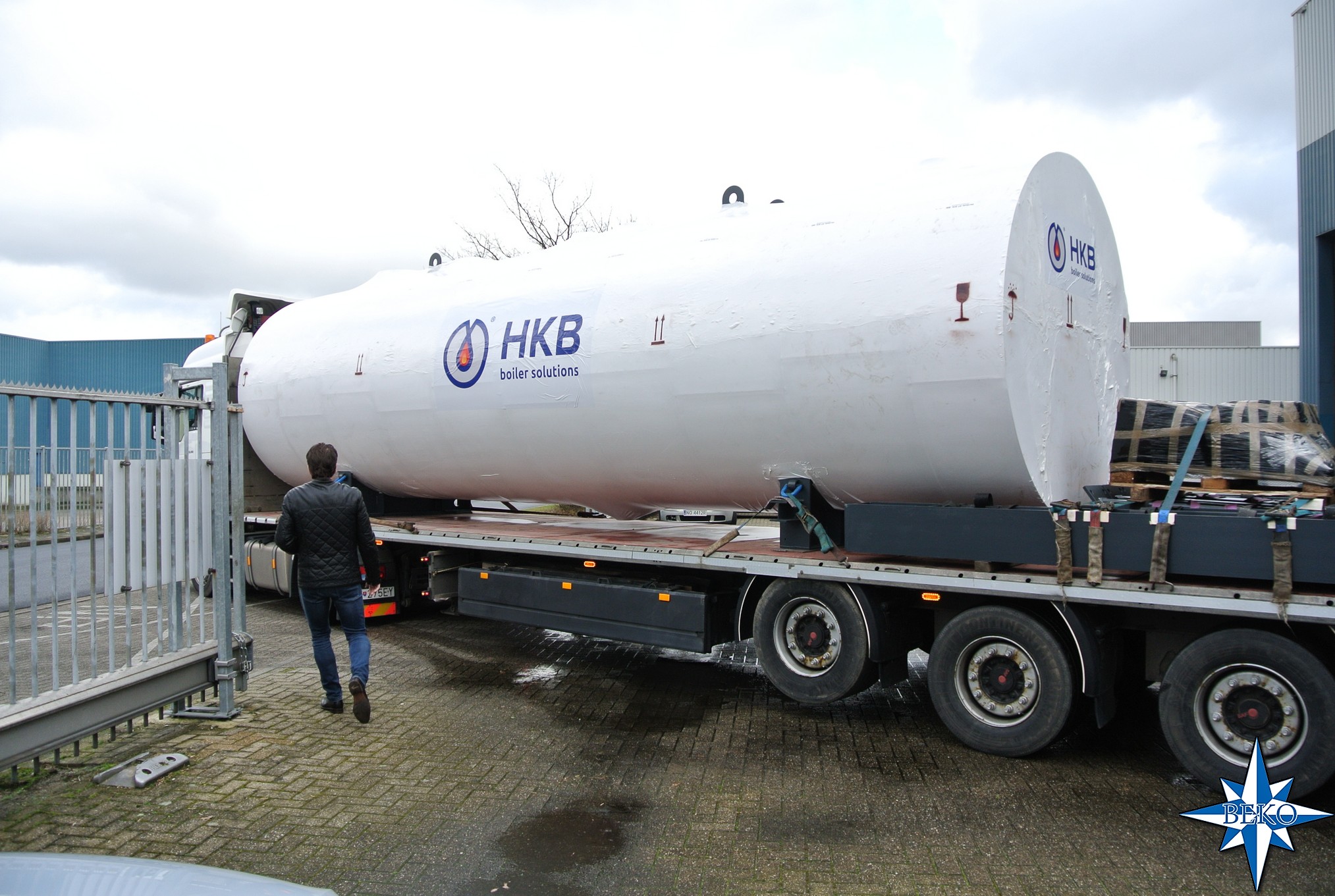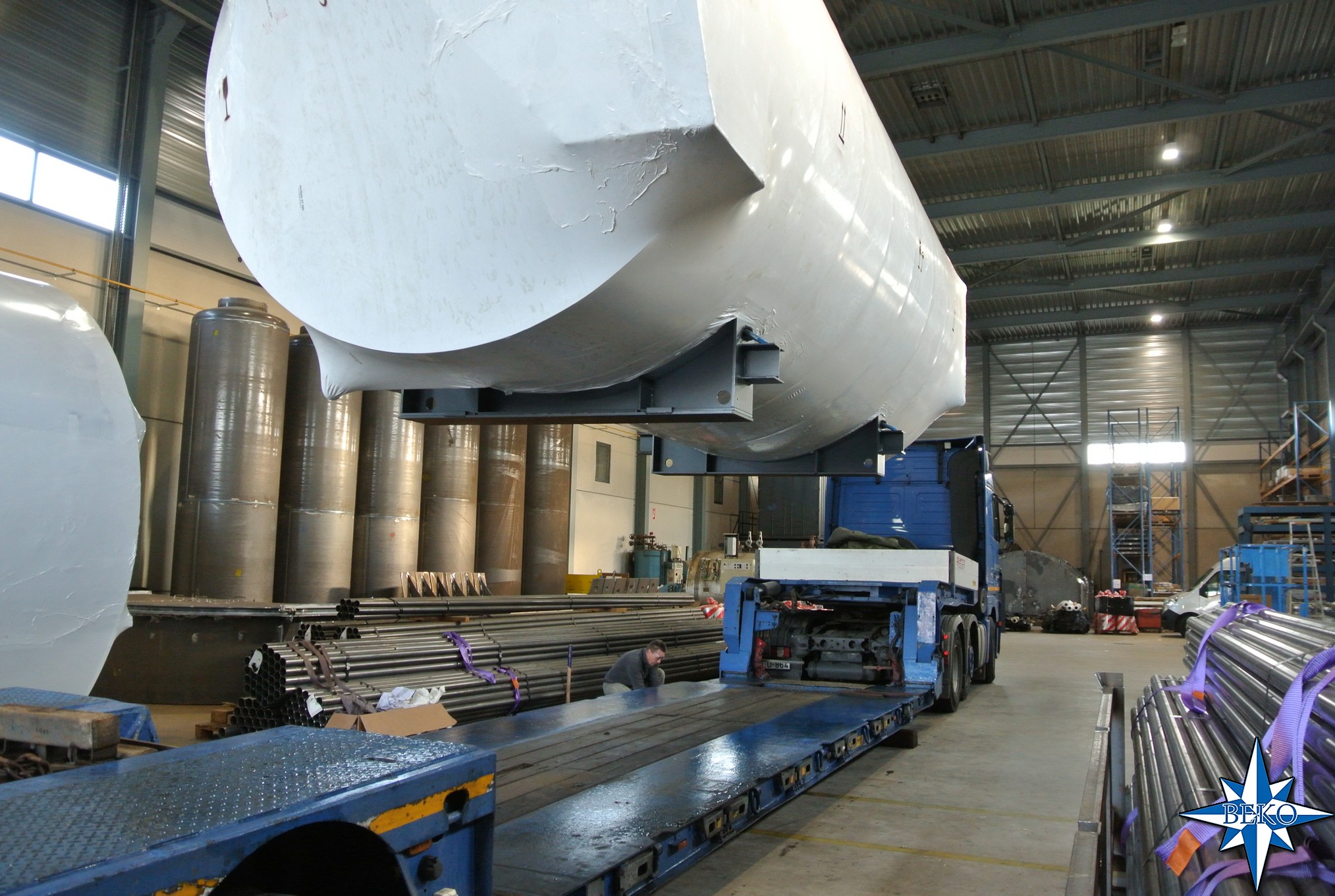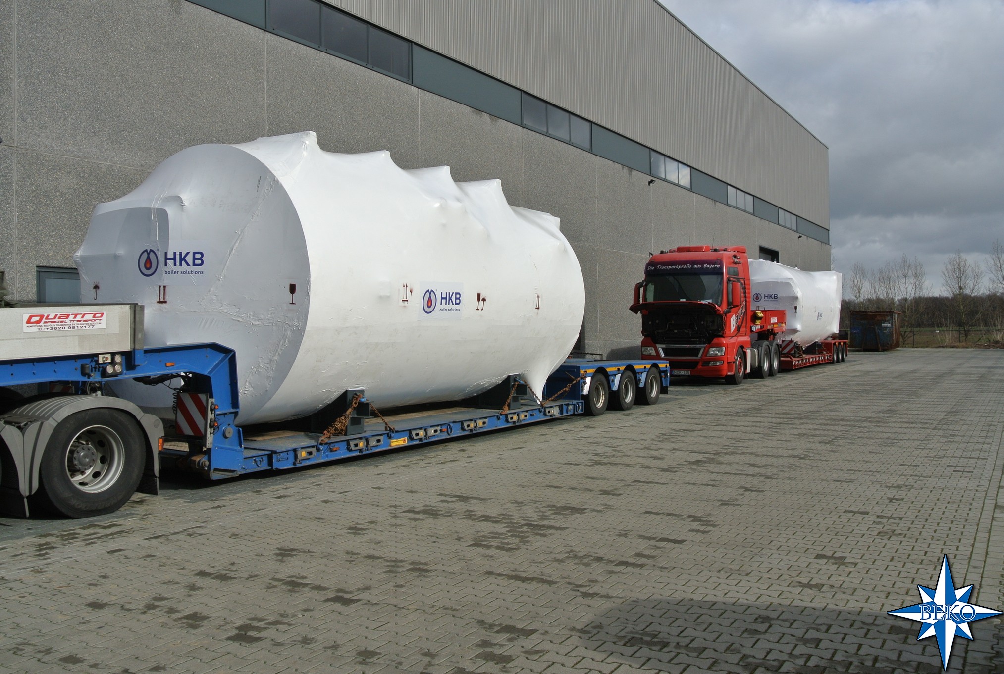 Vandaag hebben we transport verzorgd met 2 diepladers, geladen met 2 boilers van 26 ton en een open trailer met watertank naar Hongarije.
