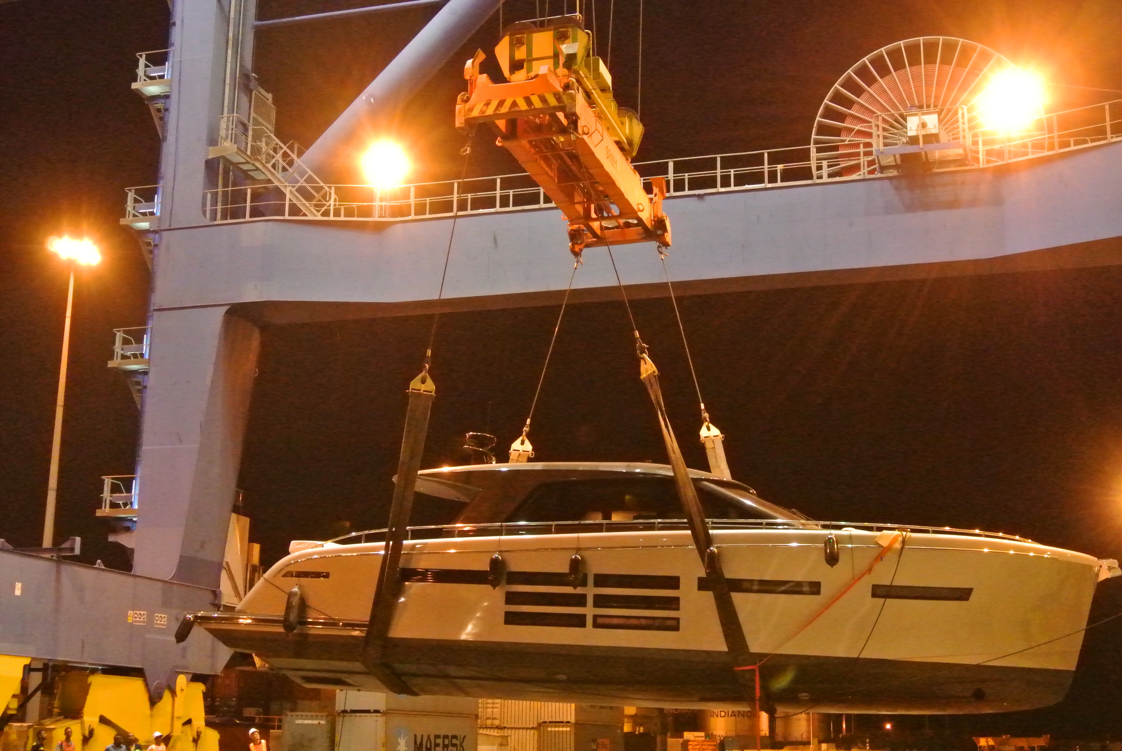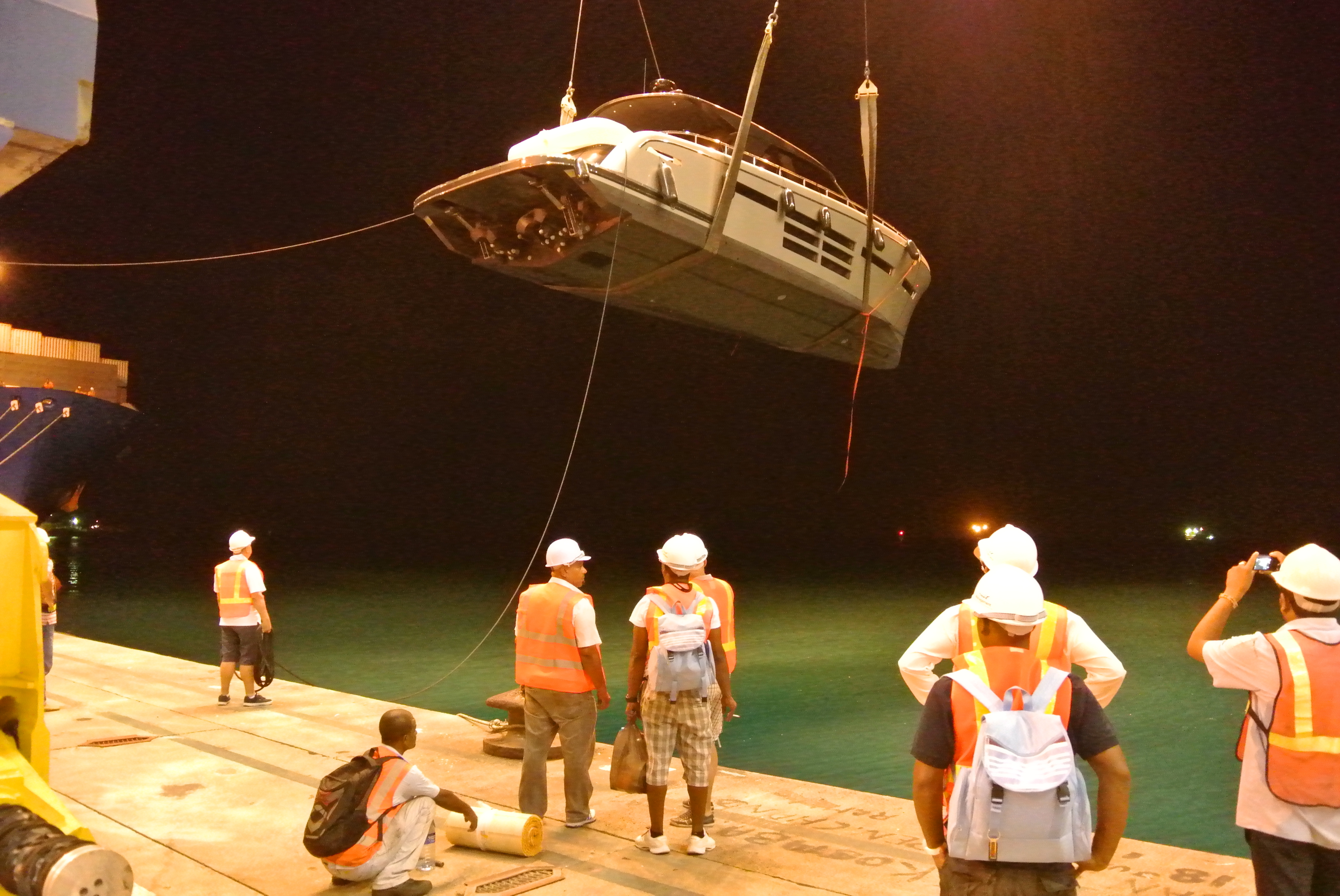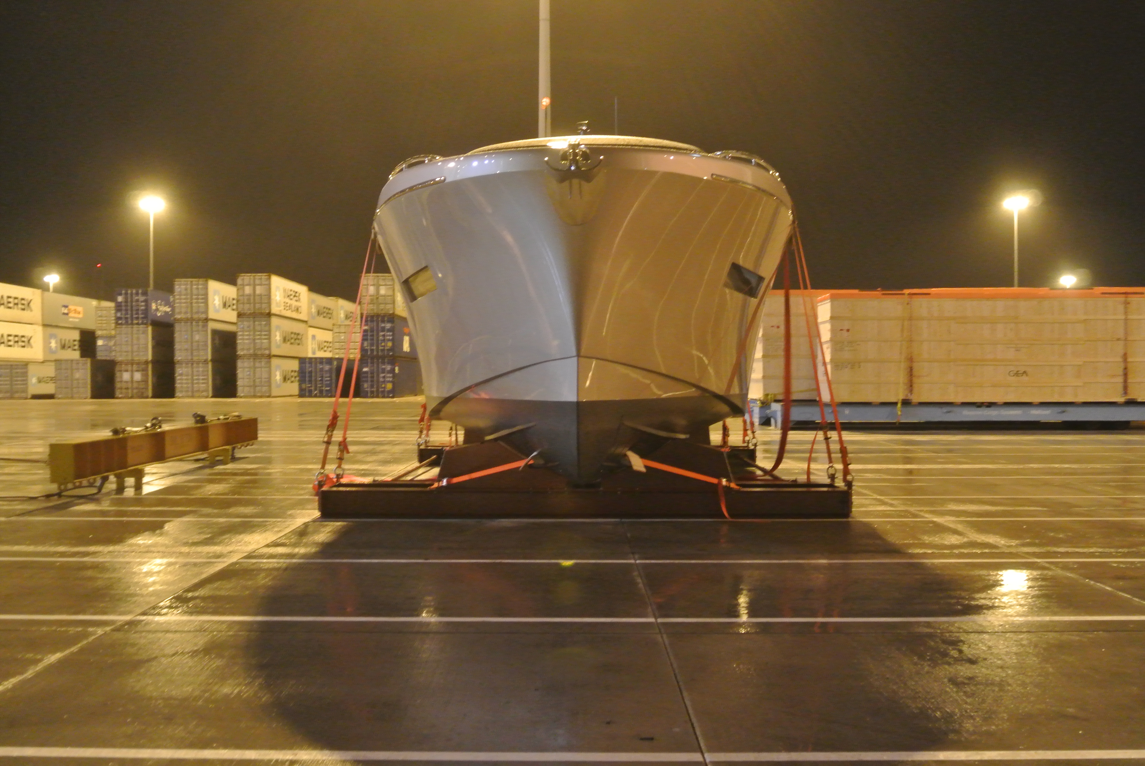 Vanaf Rotterdam naar Mauritius, het jacht werd vervoerd per containerschip.