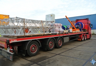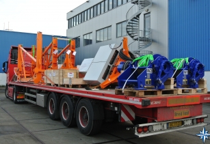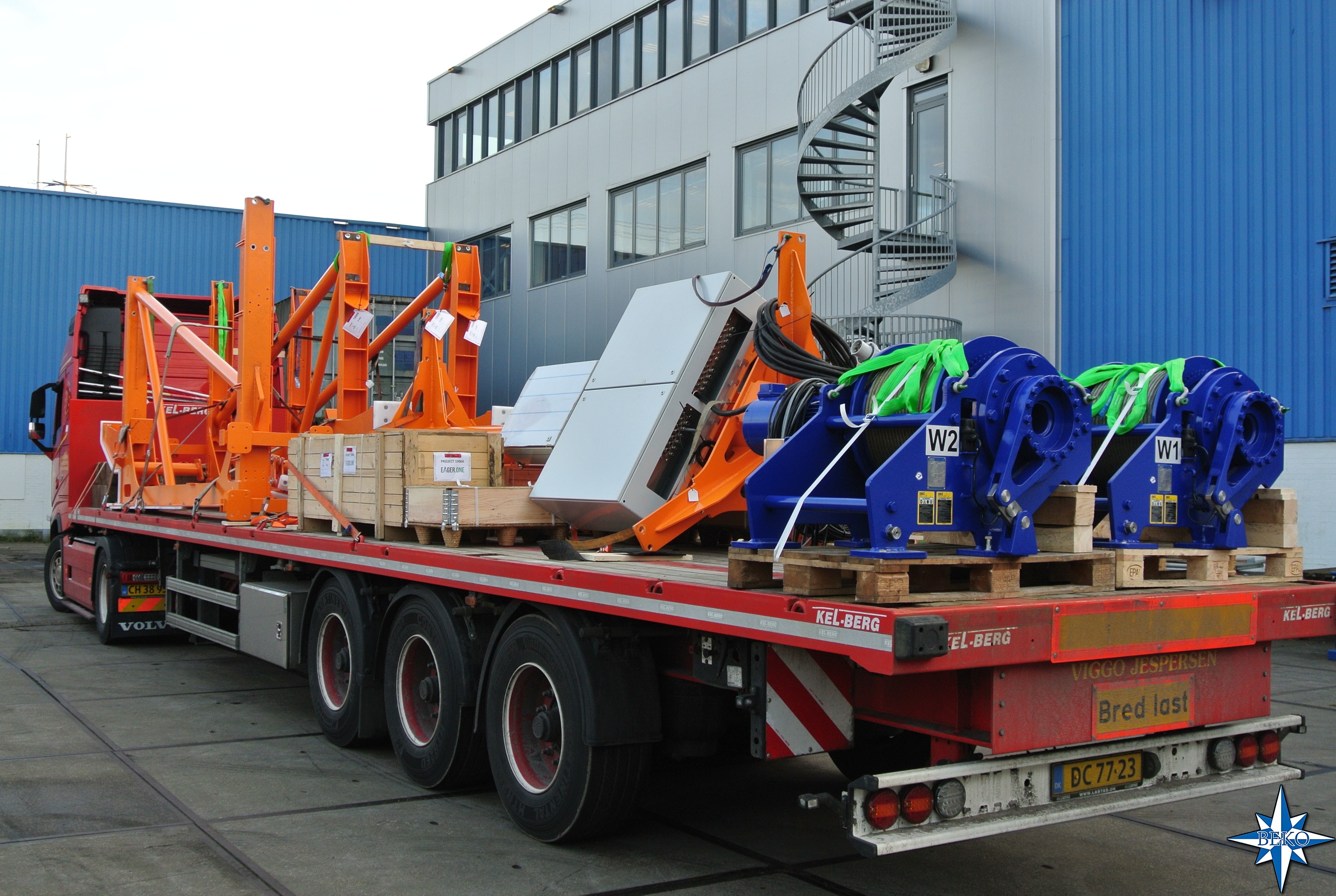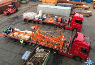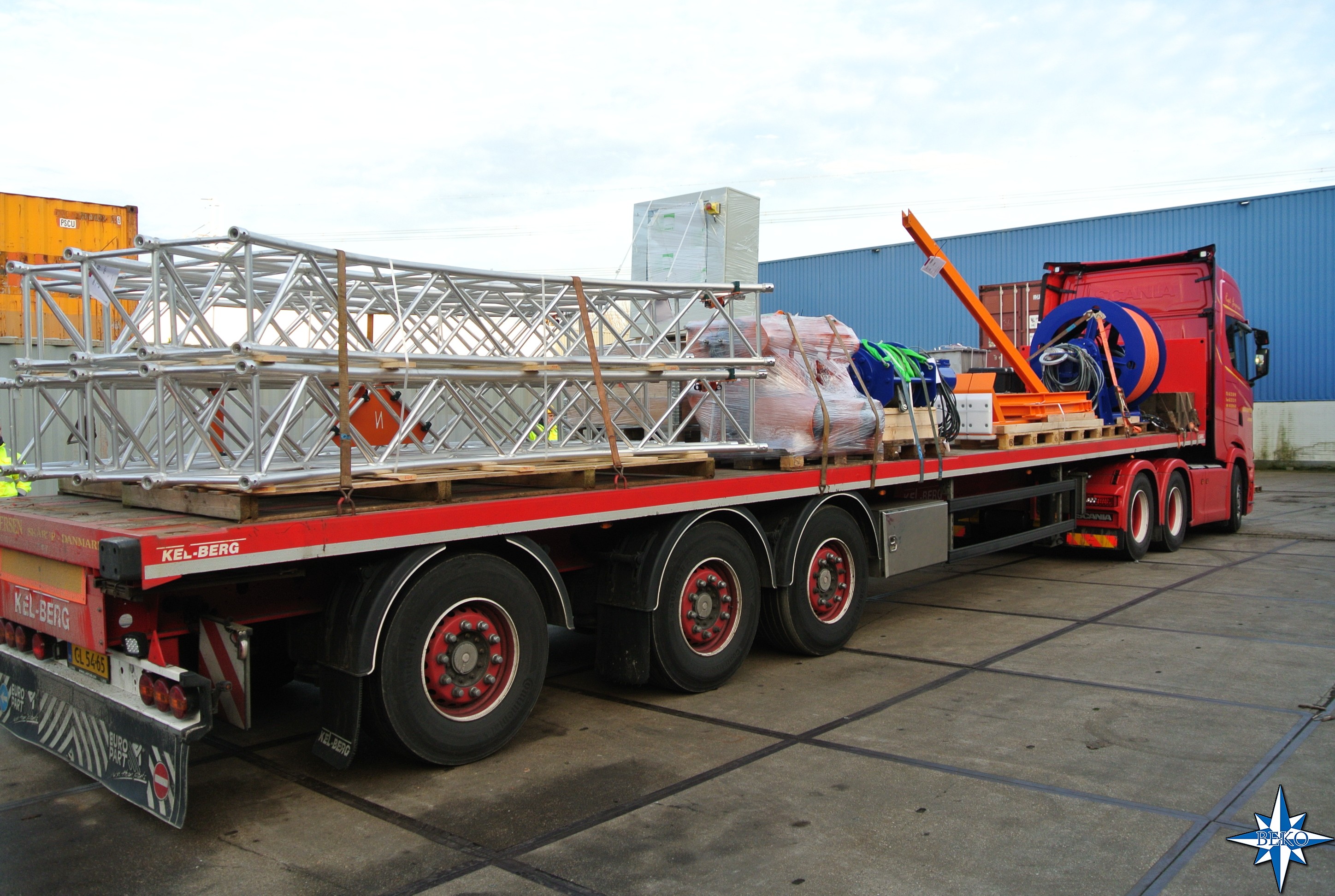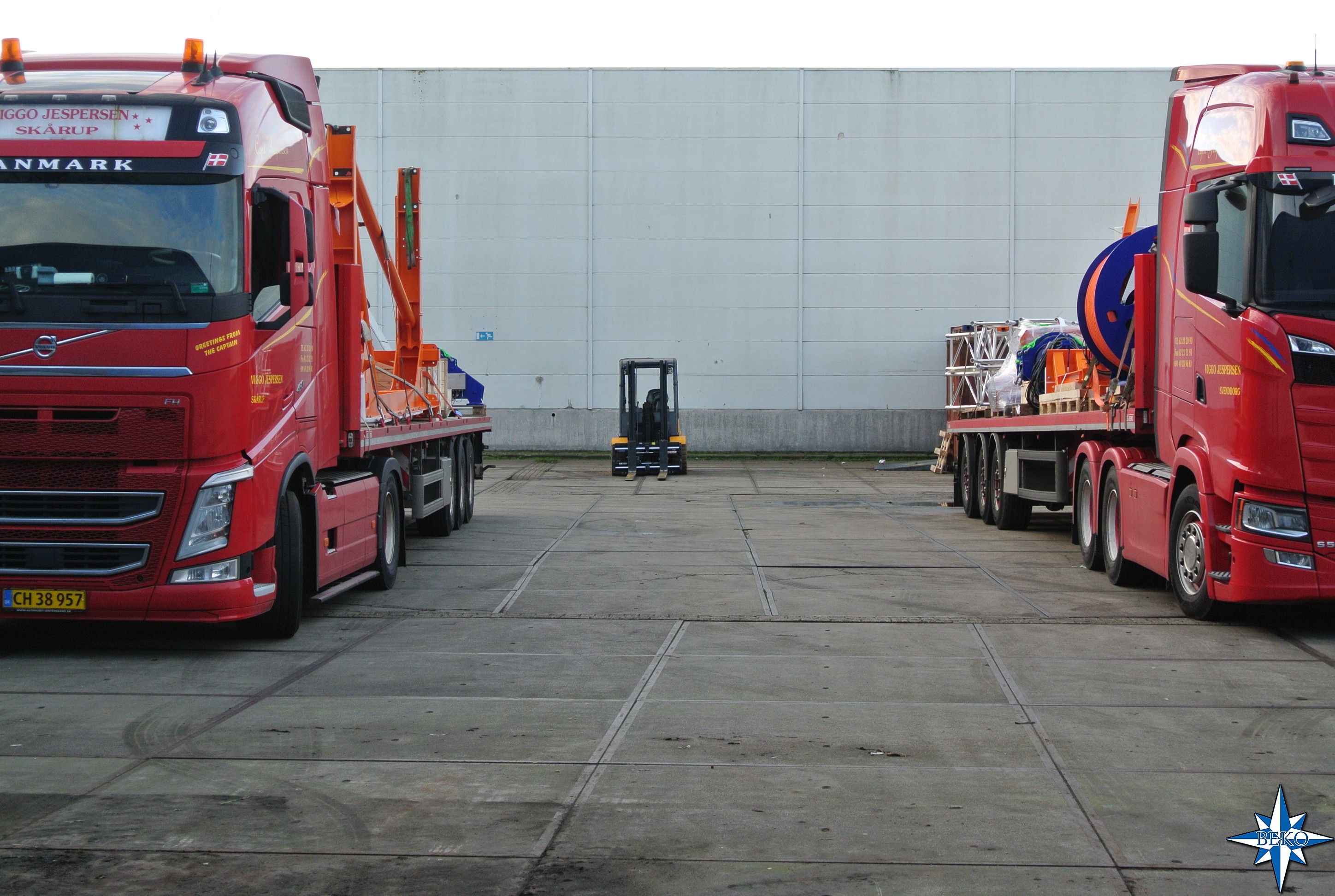 Twee trucks met diverse niet stapelbare goederen laden en transporteren naar Aalborg Denemarken.