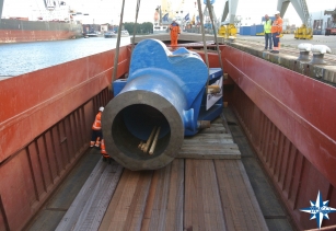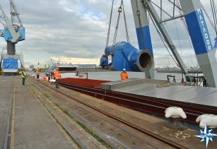 Op 12-07-2016 kwam MV River Trader aan met een gietonderdeel van 320 ton .